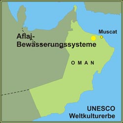 Die Aflaj-Bewässerungssysteme im Oman regeln schon seit etwa 2.500 Jahren die Wasserversorgung im Sultanat Oman. Fünf von ihnen hat die UNESCO 2006 stellvertretend für die über 3.000 Wasserversorgungsanlagen zum Weltkultur- und -naturerbe erklärt.